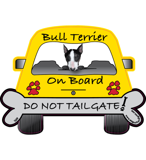 Are you a happy owner of a bull terrier? If so, this is a high time to shout out your bull terrier lover’s identity: put this catchy car magnet on your car bumper or any other metal surface at your choice!