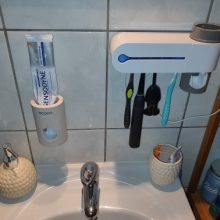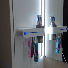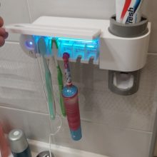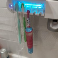 It is a magnificent device because it helps me keep the whole family's toothbrushes tidy and clean. It is very easy to install on the bathroom wall, it should only be plugged in to start working and disinfect and sterilize up to 4 toothbrushes at the same time using an ultraviolet light